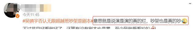 但不雅众并不买账,反而坐实了节目存在脚本的事情。 吴镇宇的这一段翰墨亦然内涵满满,网友对此进行了翻译:演是演的果然烂,吵架亦然果然吵。 吴镇宇一册肃穆地解释,更像是给这段吵架倒油,他是懂得奈何损东说念主的,这个节目果然弗成少了他。 关于《无穷卓越班2》,你们有什么要说的吗?